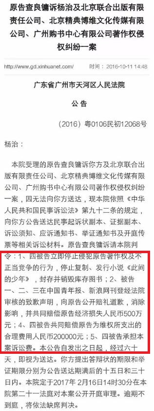 然而,金庸先生终归在近期决定对江南提起诉讼,看来,这些年的沟通工作并不十分有效。